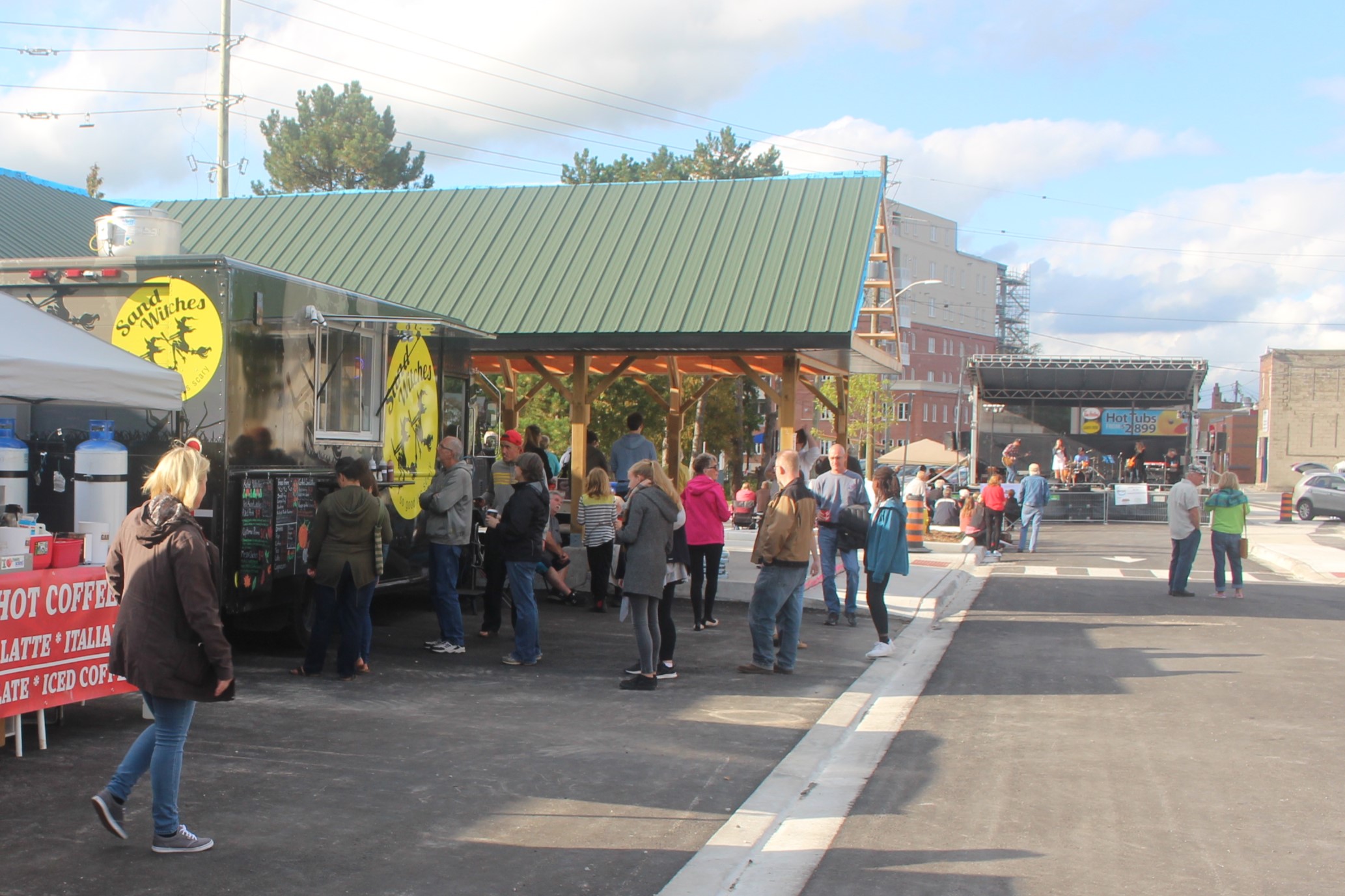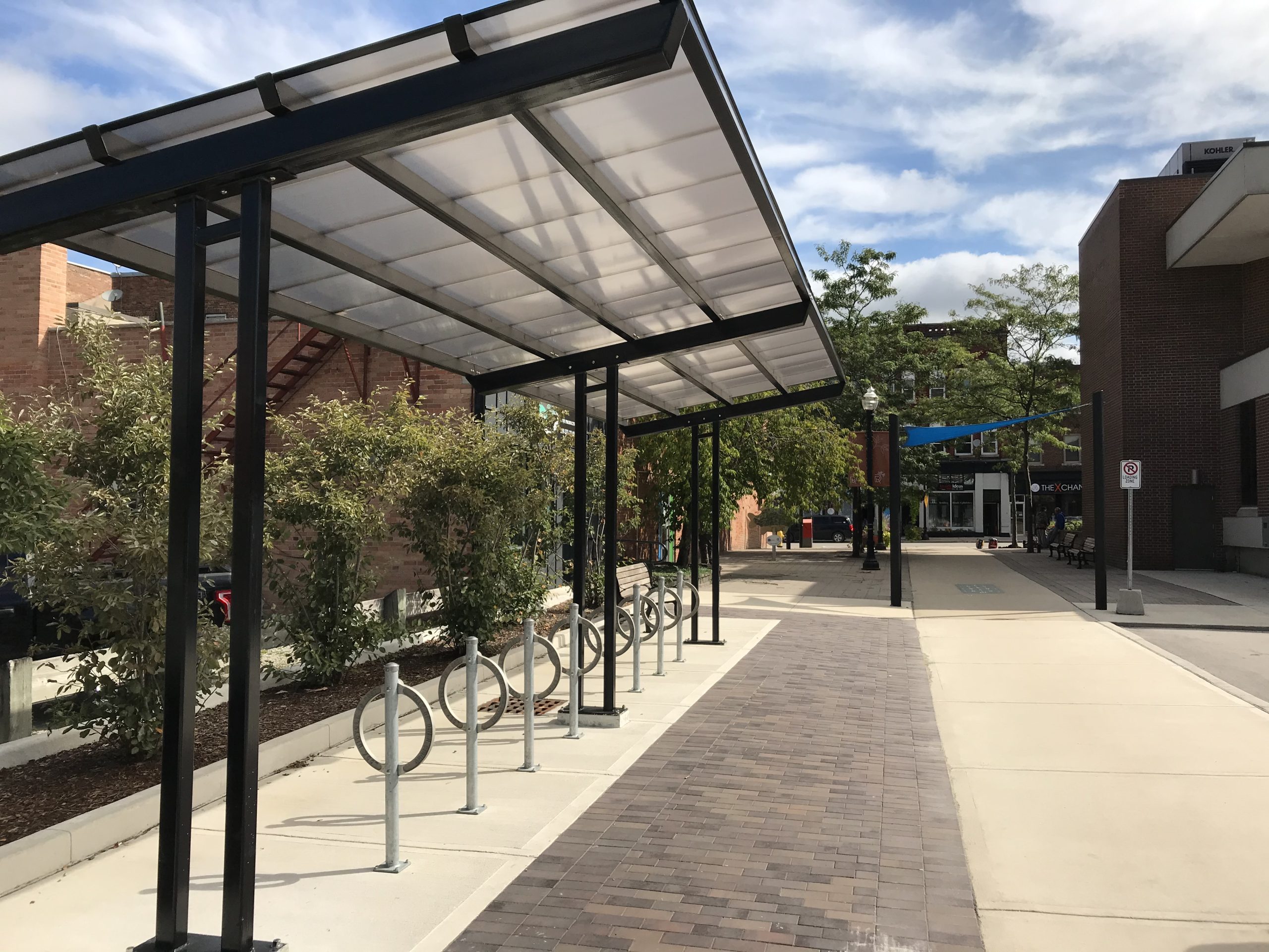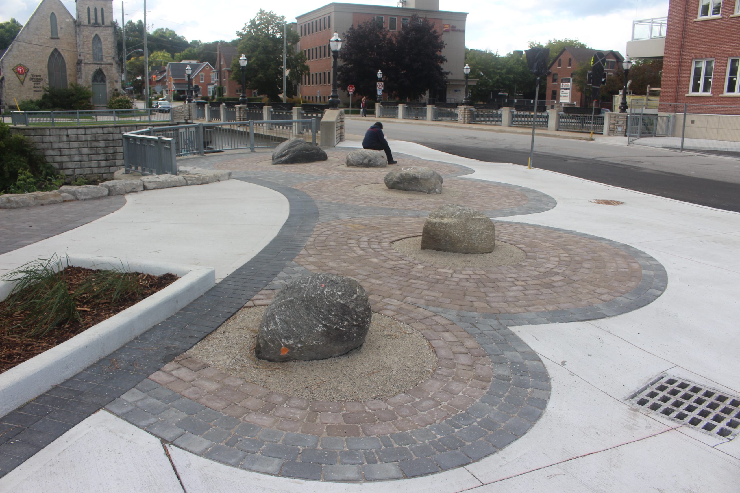 Phase 1, completed in 2019, reimagined the riverside urban block surrounding City Hall and the historic Farmers’ Market. With the realignment of 1st Avenue E., a flexible urban square was introduced to support the market, community events, and off-hour parking. Percy England Lane was extended to the river, creating a pedestrian corridor between Owen Sound’s main street and the waterfront. A shaded public gathering space was also created as a venue for informal use and public art.