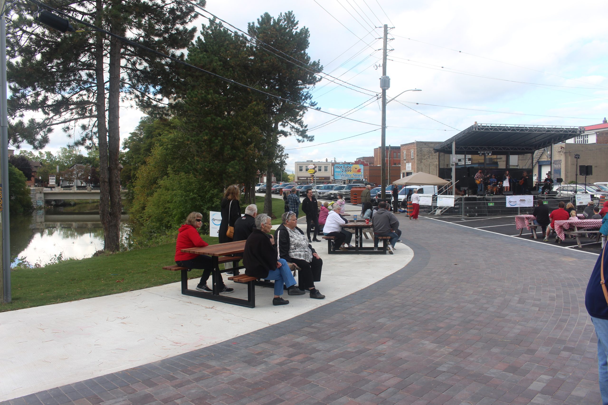 Phase 2 revitalizes a section of 1st Avenue E., between 9th Street E. and 10th Street E. Through a unique partnership with private landowners, a public boardwalk has been introduced along the Sydenham River, opening new access to the downtown waterfront. The laneway has been transformed into a shared-use space with decorative paving to support public events and daily use, while enabling adjacent building owners to activate their river-facing façades with patios, retail access, and event spaces. Illuminated gateway columns mark the transition to the harbourfront.